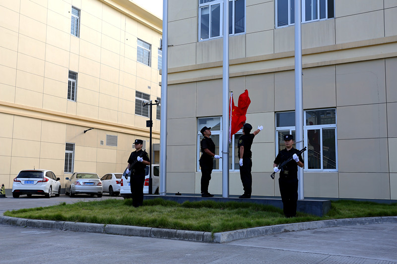 升旗队员迎接微风,手握鲜艳的五星红旗,迈着铿锵矫健整齐的步伐,伴着雄壮激昂的国歌,员工们齐声高唱“起来!不愿做奴隶的人们!把我们的血肉, 筑成我们新的长城……”一边目送国旗冉冉升起,为伟大昌盛、繁荣富强的祖国送上最深情的祝福。
