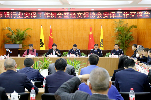 3月30日上午,市公安局经文保支队和市经文保协会在公司多功能厅召开全市银行业安保工作例会暨经文保协会安保工作交流会,全市各银行和经文保协会单位共180余人参加了会议,经文保支队方张锋支队长出席会议并讲话。会议由治安经文保协会会长林建光主持。