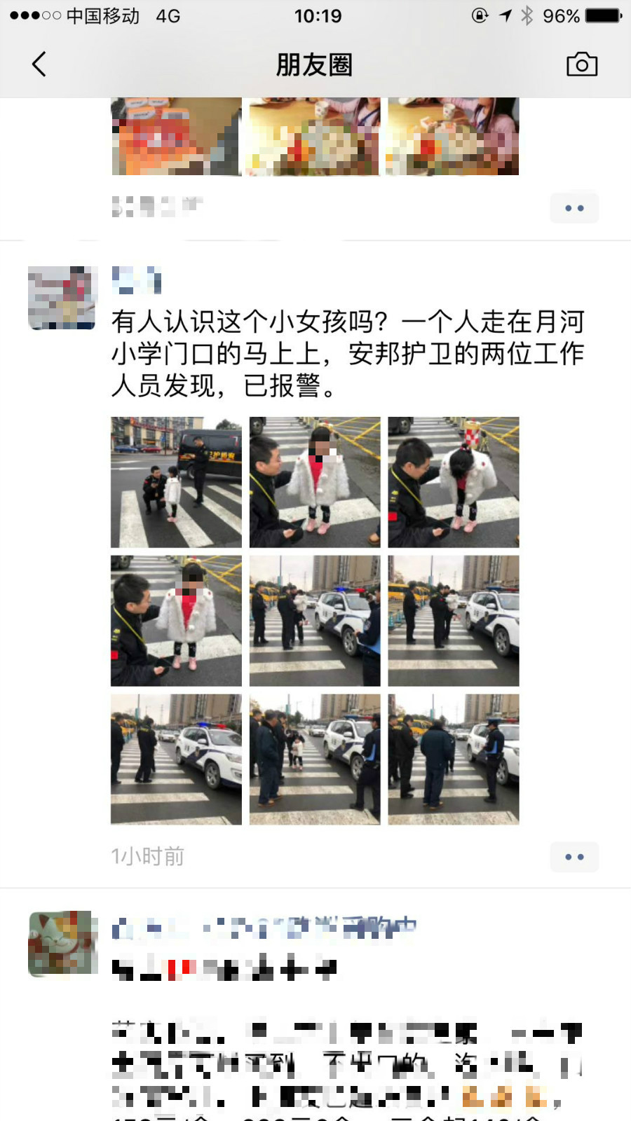 有限公司员工刘志文、鲁海斌在执行任务至月河小学浮玉校区附近时,发现一名小女孩正独自来回穿梭在马路中间,路上车辆来来往往非常危险。