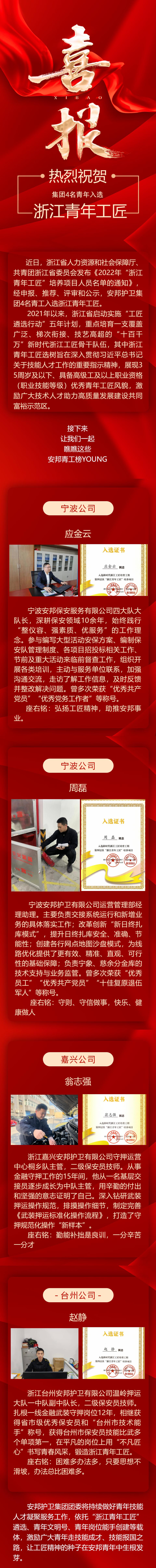 喜报!2022年浙江青年工匠名单揭晓,黑料网 4名青年上榜!