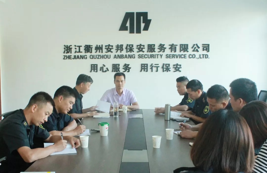 9月30日,衢州安邦保安公司组织召开全体行政人员会议。会上,总经理鲁家富听取了各部门节前安全工作开展情况的总结报告,并重点就国庆前维稳工作进行再部署。