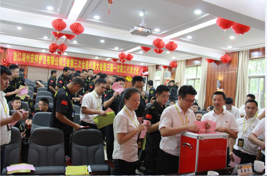 有限公司工会第二届工会委员会任期届满。经过一个月时间的工作筹备,湖州公司工会于9月4日上午召开了第三次会员代表大会暨三届一次职工代表大会。会议由公司党委委员、副总经理杨玉如主持,市财贸工会主席张育宝,公司党委书记、董事长、总经理莫继权,公司党委委员、总经理助理、工会主席徐骞及来自公司各单位的职工代表参加了会议。
