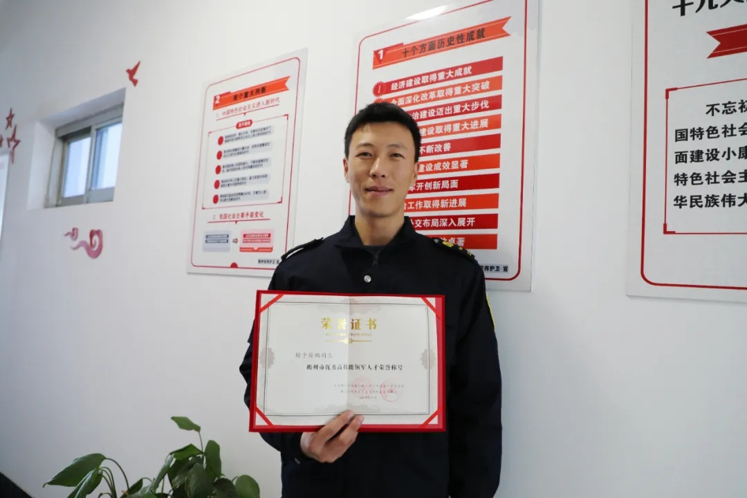 当兵五年的他,对特保职业有着浓厚的兴趣,在职期间,他不断学习技术提升本领,熟悉保安员技能知识和实操,取得高级保安员职业技能资格证书。2019年,在柯城区第九届职工职业技能竞赛中,荣获保安员竞赛二等奖及柯城区技术能手荣誉称号。2020年在“弘扬工匠精神、助力产业创新”首届职工技能运动会中荣获衢州市金牌职工荣誉称号,衢州市技术能手(二级)称号。