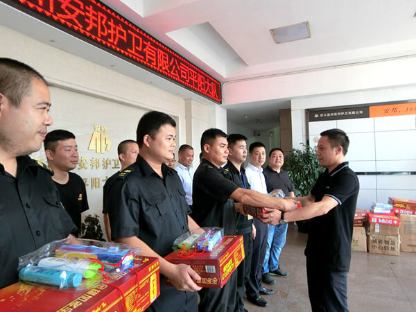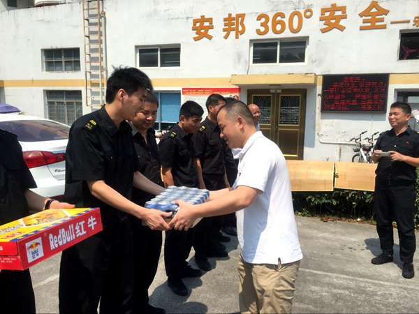 温州公司领导心系员工健康,牵挂安全生产,为勉励员工辛勤工作,从7月24日开始,相继开展了高温慰问活动。各位领导来到各个守押大队和偏远驻点,看望、慰问奋战在高温一线的广大队员,为他们送去防暑用品和问候。公司领导每到一处,都与队员进行互动交流,一是慰问员工,二是感谢员工,三是勉励员工,在此基础上,希望各员工克服困难,确保高温期间守押安全。