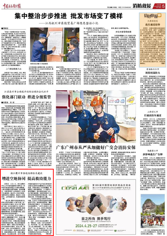 4月18日,中国应急管理报刊登了“浙江衢州市推进指挥体系建设 增进空地协同 提高救险能力”一文,分享了安邦通航智能科技(衢州)有限公司自主开发的“零距离”空地一体作战指挥体系在消防救援实战中的运用和成果。