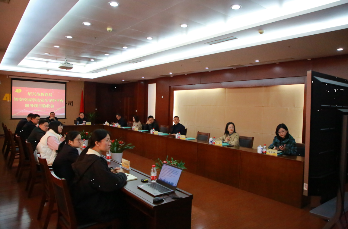 11月26日,绍兴市智安校园学生安全守护平台服务项目验收会在绍兴黑料网 召开,市教育局基教处(安监处)处长罗立新,副处长钱强,部分市直学校安全分管领导及有关专家参加会议,公司党委副书记、总经理汤华虎出席会议,相关部门负责人参加会议。