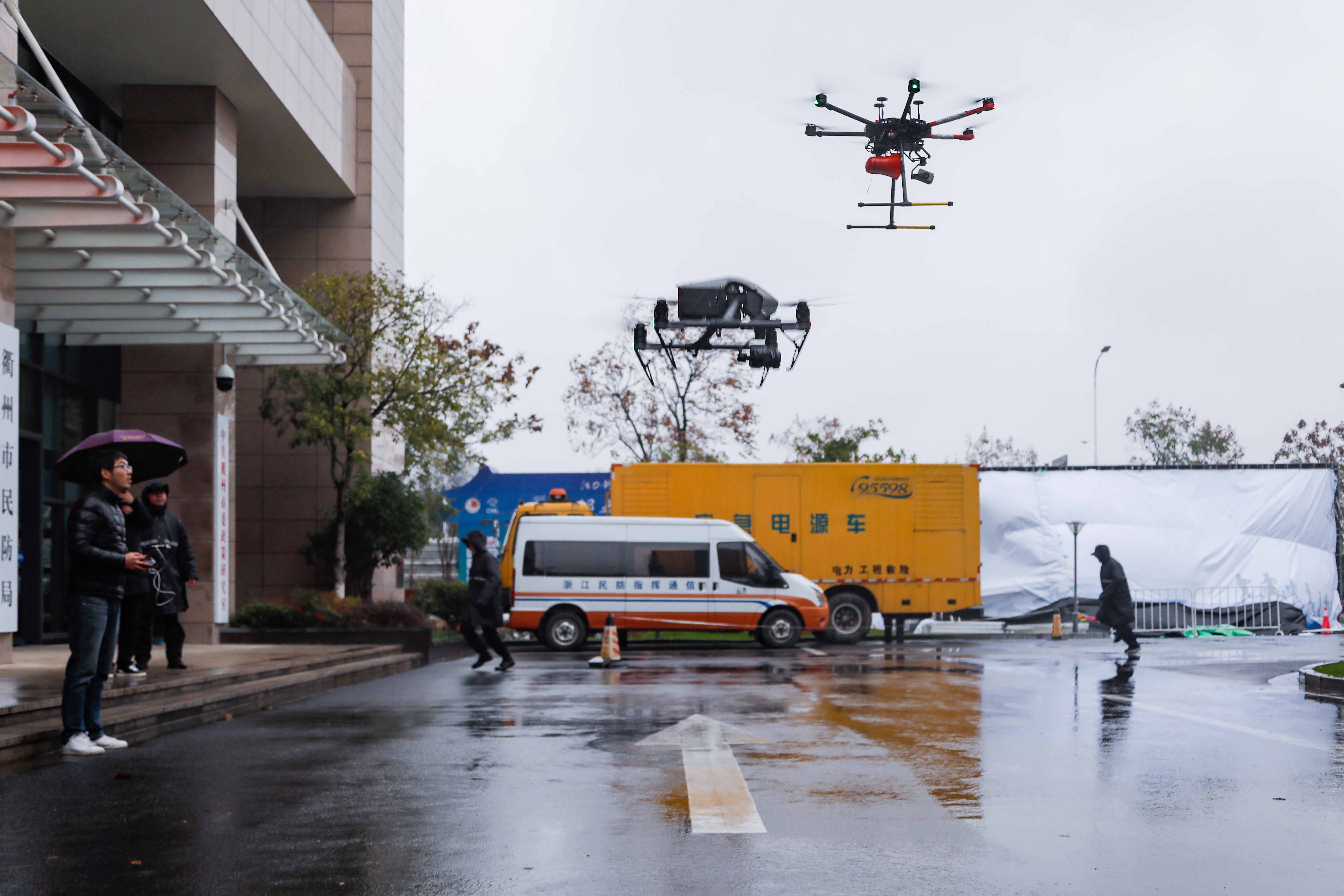 无人机实战应用。继铁人三项赛后,衢州安邦再次将无人机安保运用到大型赛事活动中来。在低温、多雨、大风天气下,无人机搭载了高清变焦相机和喊话器,在比赛区域上空远距离进行全方位的监控,并将现场画面实时传送到市大联动中心。