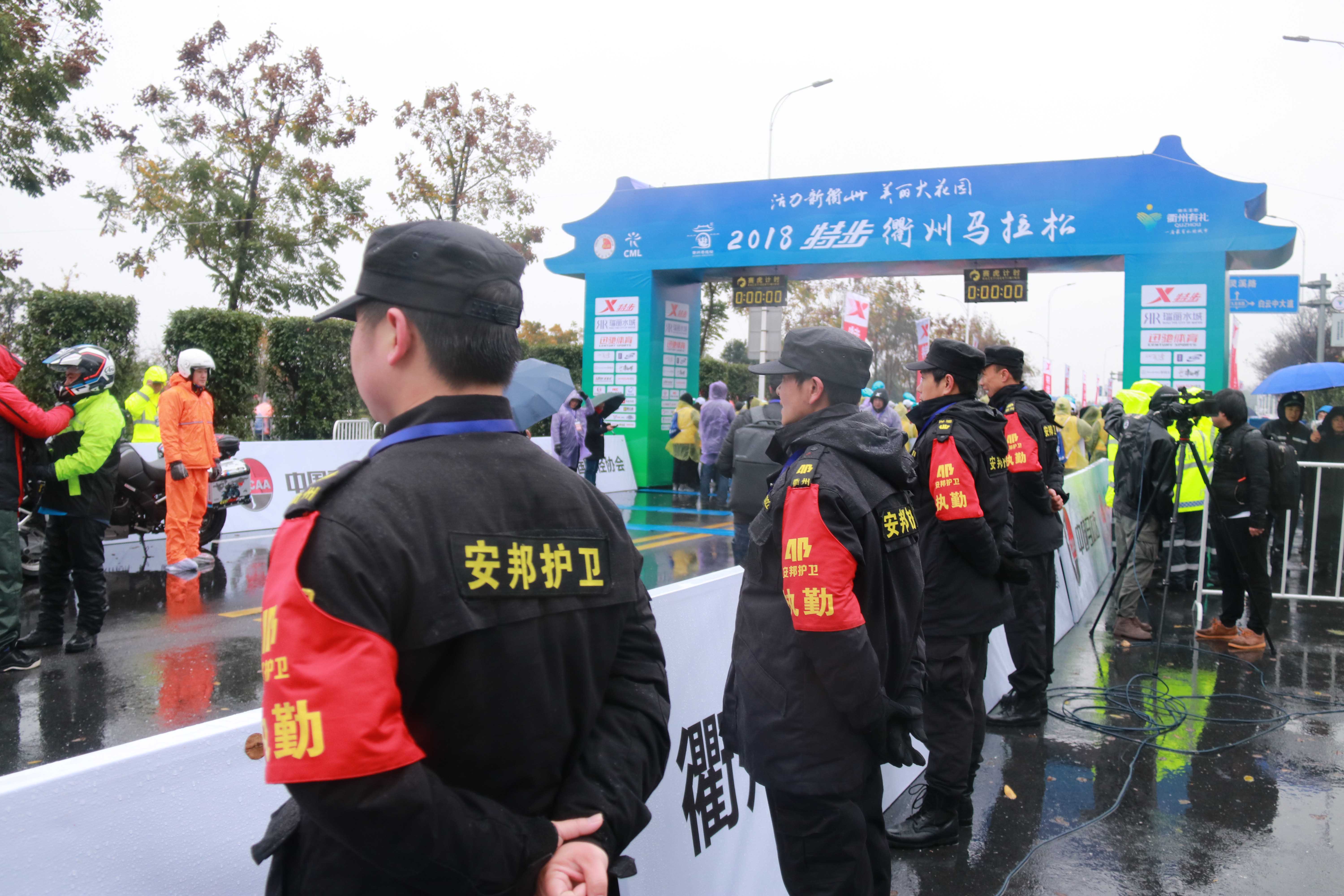 安邦保安护平安。早晨5:20安邦保安公司安保人员已悄然出征,做好赛事安保准备工作。42公里赛道,600余名安保人员13个小时默默坚守。