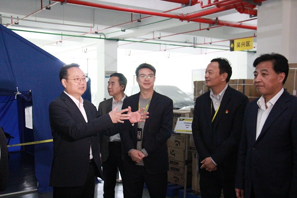 有限公司党委书记、董事长、总经理莫继权的陪同下,实地参观了湖州公司应急救援物资储备库,对储备库的储备管理、运行模式、仓库的场所容积、物资存放使用情况、物资分区、仓库物资储备数量、应急装备、管理人员等情况进行详细的调研。