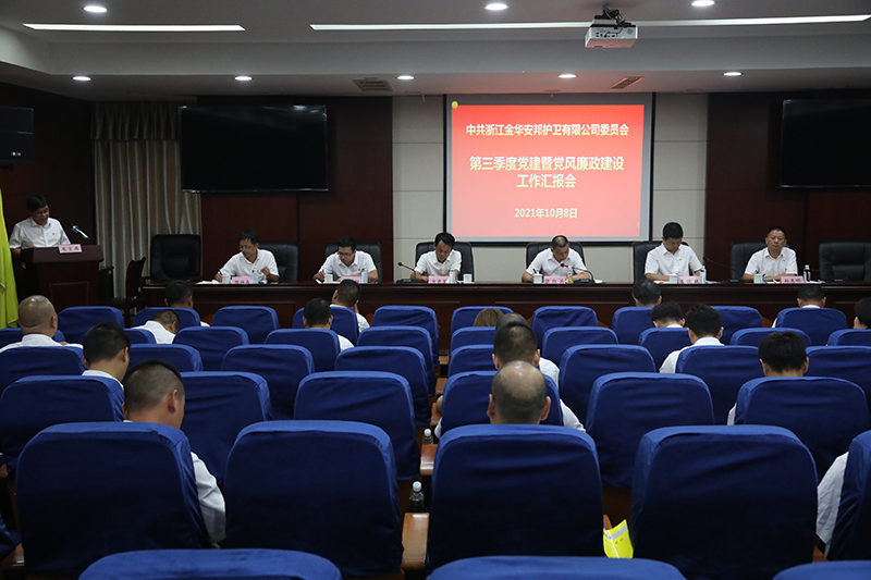 10月8日,金华黑料网 公司召开第三季度党风廉政建设报告会,公司领导班子、各支部书记、部门负责人参加会议。