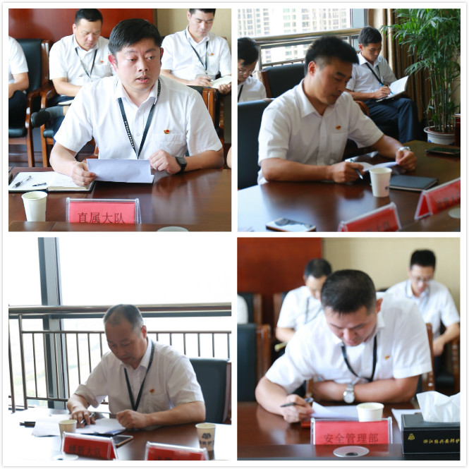 会议听取了公司直属大队、诸暨大队、嵊新大队及安全管理部就本部门2019年上半年度主要工作情况、突出亮点、“不忘初心,牢记使命”主题教育开展情况、当前存在的问题及下一步工作计划进行了汇报。
