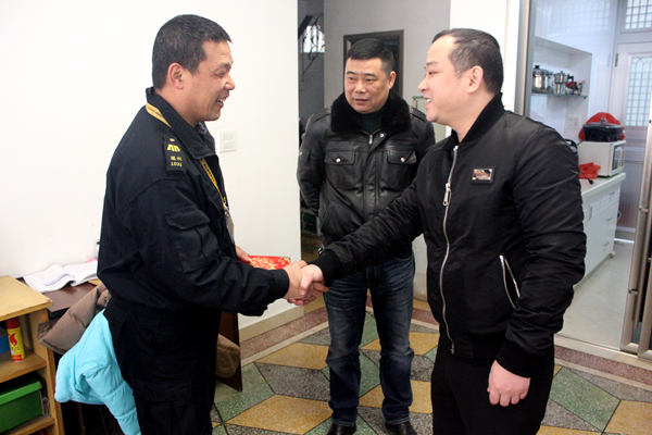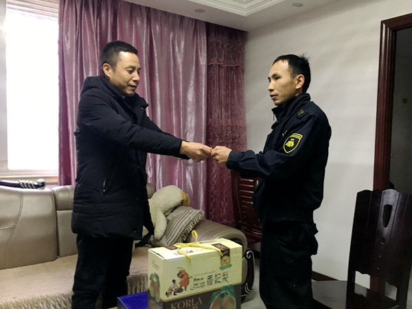 2月9日和11日,在狗年春节即将来临之际,受温州公司领导班子的委托,公司纪委书记、副总经理林君杰,副总经理余建东、苏苗杰等分别走进市区、平阳、乐清等各守押大队及其困难员工家庭,亲切看望并慰问了一线和困难员工,向他们致以新春的祝福,并送上了慰问品。