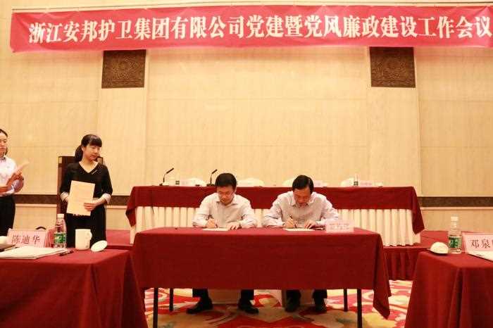 本次会议分两个阶段进行,上午以“勇立潮头话担当、国企改革当先锋”为主题的微型党课鸣锣开赛。来自各市安邦公司的10名参赛选手依次登台,他们从不同角度倾说对党的感情、对事业的忠诚、对担当的理解。下午的会议由集团公司党委委员、副总经理毛行立主持。各子公司党委书记分别就党建情况作述职报告。集团公司党委书记、董事长吴高峻与各子公司签订了党风廉政建设责任书,并就推进党建暨党风廉政建设工作发表了重要讲话。全省各子公司党委书记、纪委书记、党群工作者参加了此次会议。