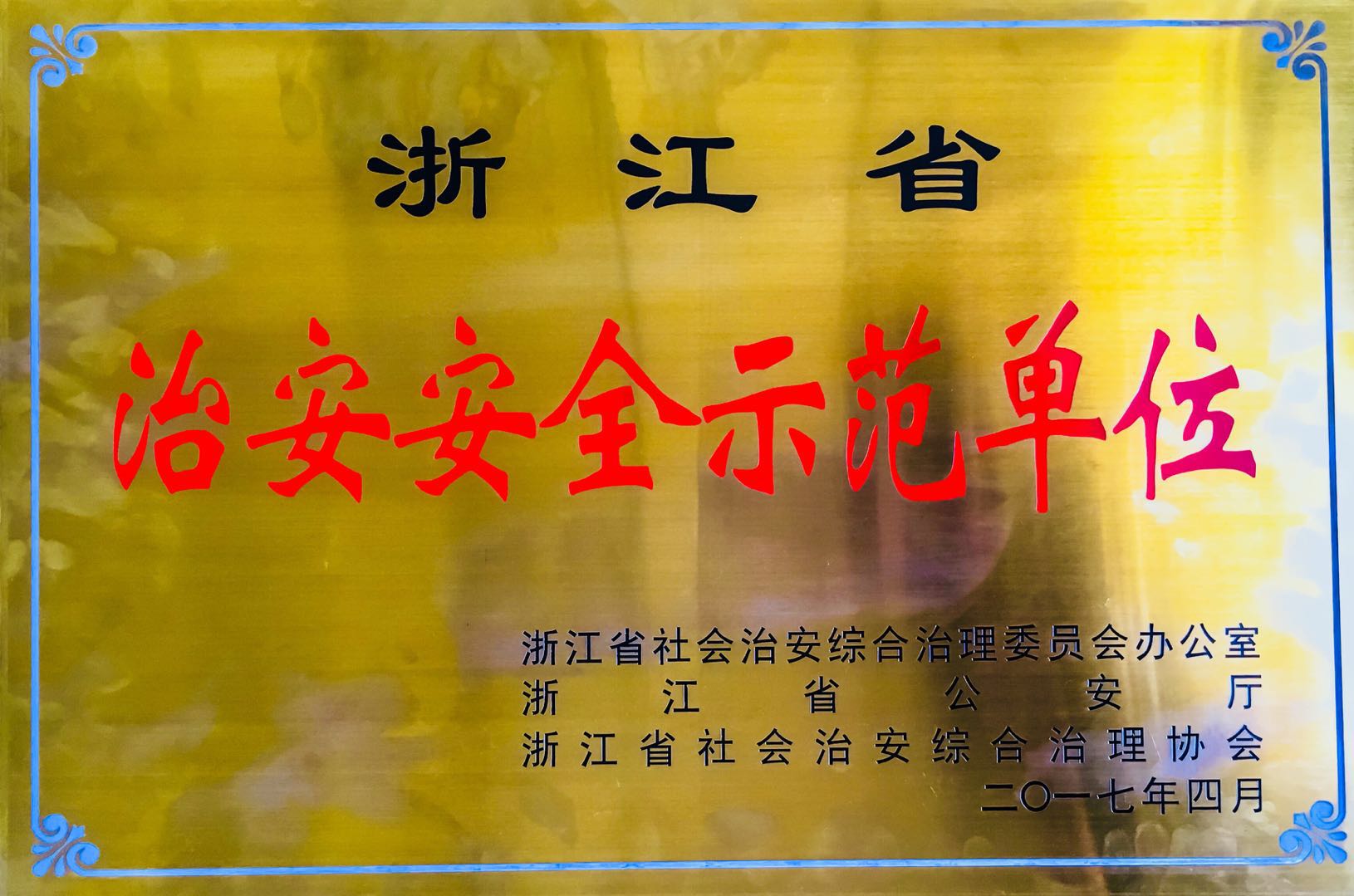 喜获“浙江省治安安全示范单位”表彰