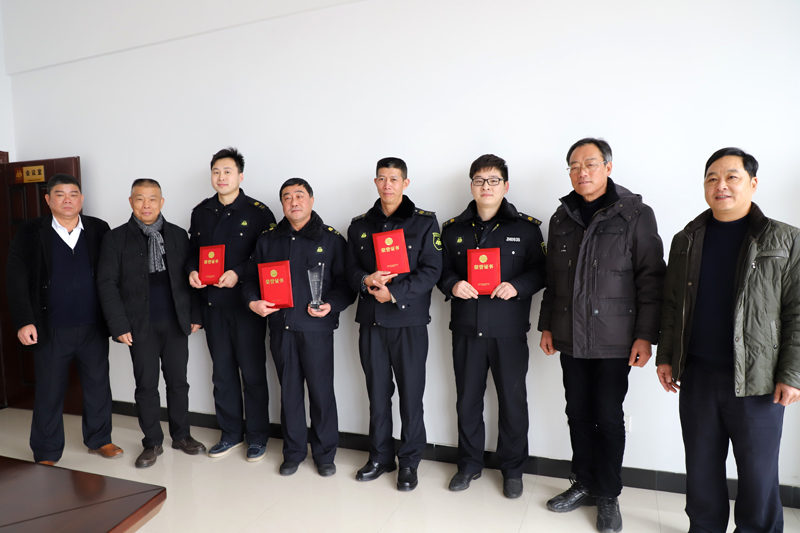 2月2日上午,金华市公安局经文保支队政委何国灿,金华市保安协会会长陈滋政,金华市保安协会副会长、金盾公司 总经理徐薛明等一行四人到金华安邦公司,为参加金华市首届“金盾杯”最美保安员评选活动的获奖者颁发荣誉证书,公司总经理方顺富陪同颁奖。