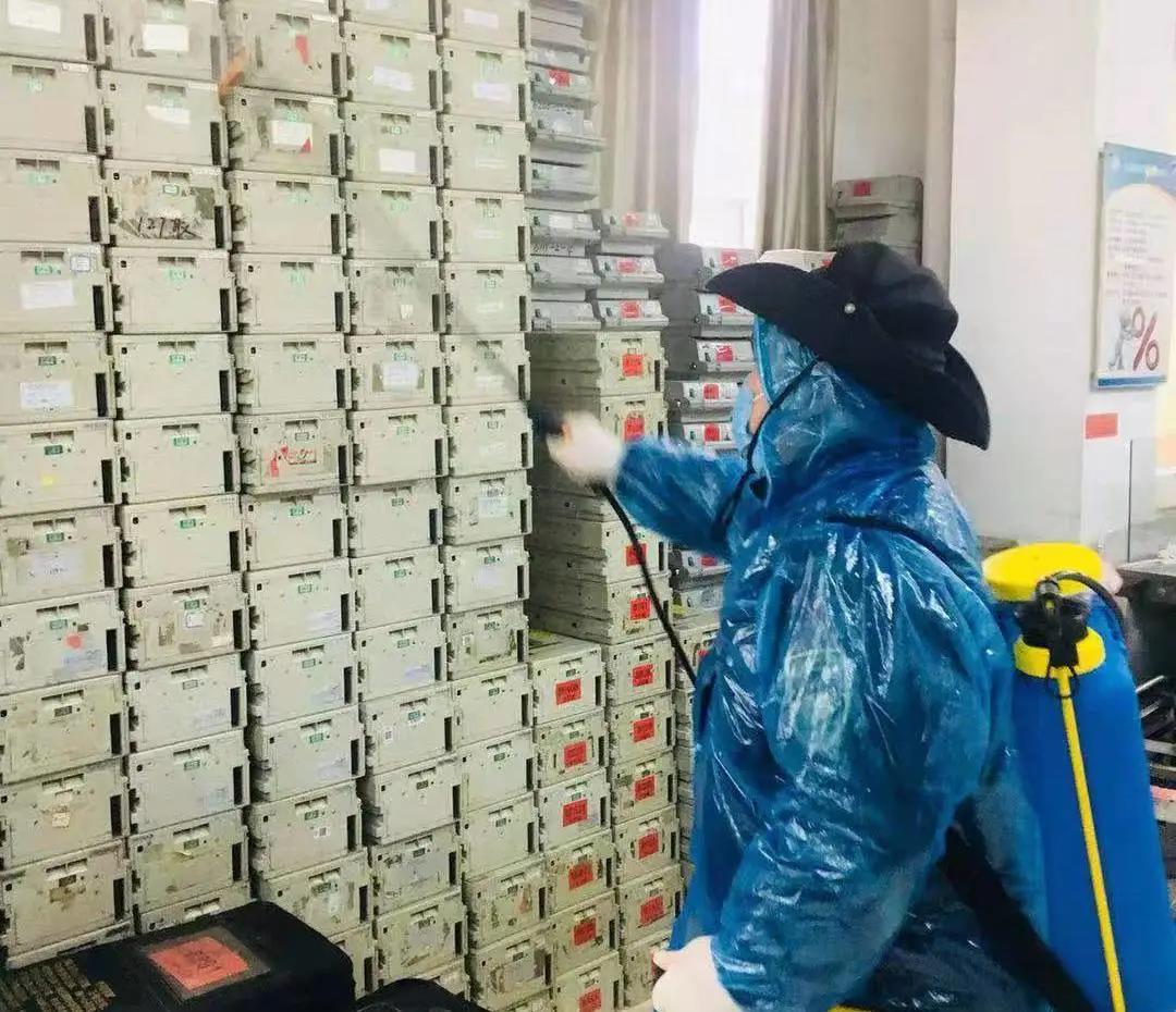 对医院等重点区域上门收款收回的现金封包,接收时对其进行全方位的消毒。对每日ATM自助设备需装配出的钞箱、箱包必须进行消毒后才能使用、交出。同时,专门为负责清点医院现金封包的人员配备专用手套,避免直接接触、将风险降到最低。