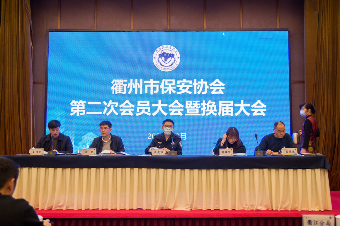2020年12月10日,衢州市保安协会第二次会员大会暨换届大会在衢州国际大酒店召开。市公安局党委委员、副局长汪史唯出席会议,市民政局社会组织管理中心邵璐蓉,市公安局治安支队支队长程科,副支队长吴荣良,维稳安保大队长吴信开,各县市区公安(分)局治安大队相关负责人,柯城、衢江、柯山、开发区、龙游、江山、常山、开化等会员单位50余人参加。会议由程科主持。