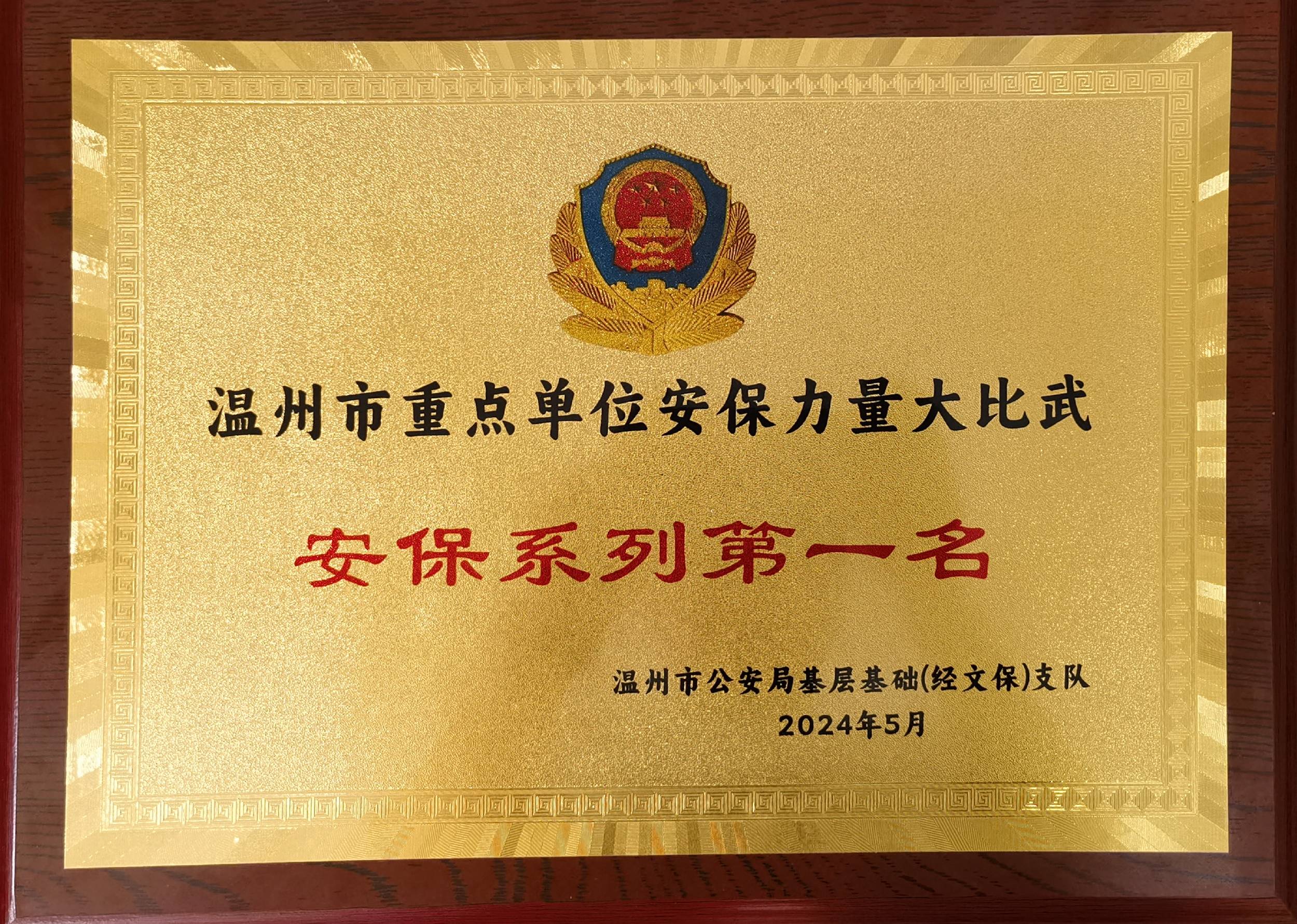 公司在温州市重点单位安保力量大比武荣膺安保系列第一名佳绩!