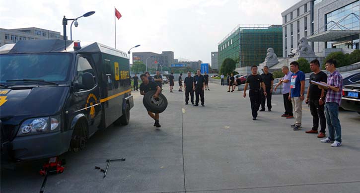 10月10日,集团公司大练兵考核小组在集团公司副总经理毛行立带领下对我公司大练兵活动开展情况进行了考核验收。考核主要内容为应急预案桌面推演、守押基础知识考核、体能考核、防暴枪分解结合以及驾驶员更换轮胎、特种驾驶技术。考核中,队员们沉着冷静、奋勇拼搏,将平时训练的成果转化为考核优良的成绩,充分展现了安邦员工强健的体魄、熟练的职业技能掌握和稳定的应急处置能力。