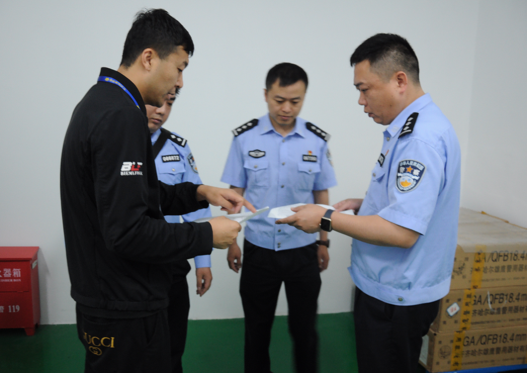 为进一步提高武装守押企业枪支使用的规范性、安全性,强化枪支管理工作,全面排查枪支安全隐患,根据浙江省公安厅治安总队《关于四川南充市发生的保安服务公司押运员枪支走火案件的情况通报》要求,521日上午,舟山市公安局治安支队、市公安局定海分局治安大队到舟山公司开展公务用枪配备单位风险隐患联合排查工作,舟山公司党委书记、董事长、总经理茹新奋,党委委员、副总经理战国庆陪同检查。