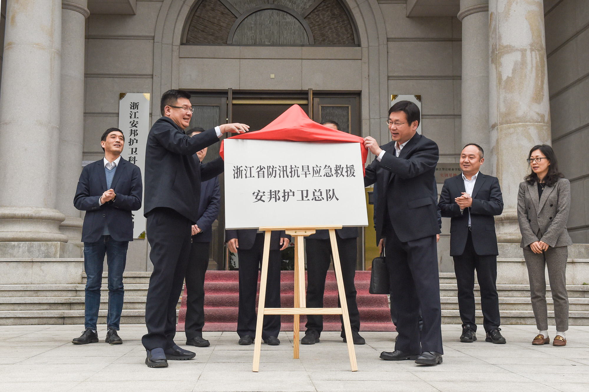 调研期间,凌志峰和吴高峻共同为浙江防汛抗旱应急救援黑料网 总队进行了揭牌。