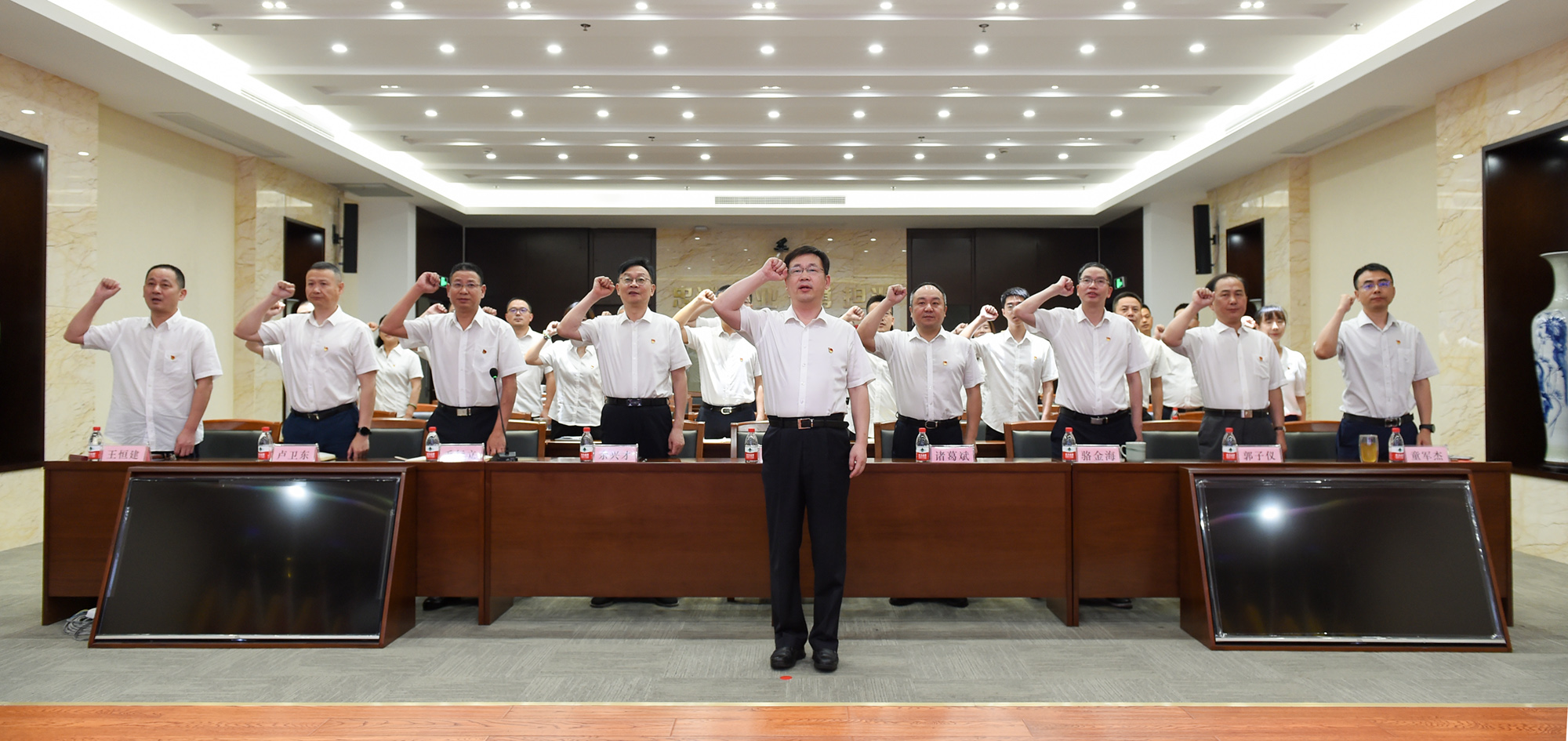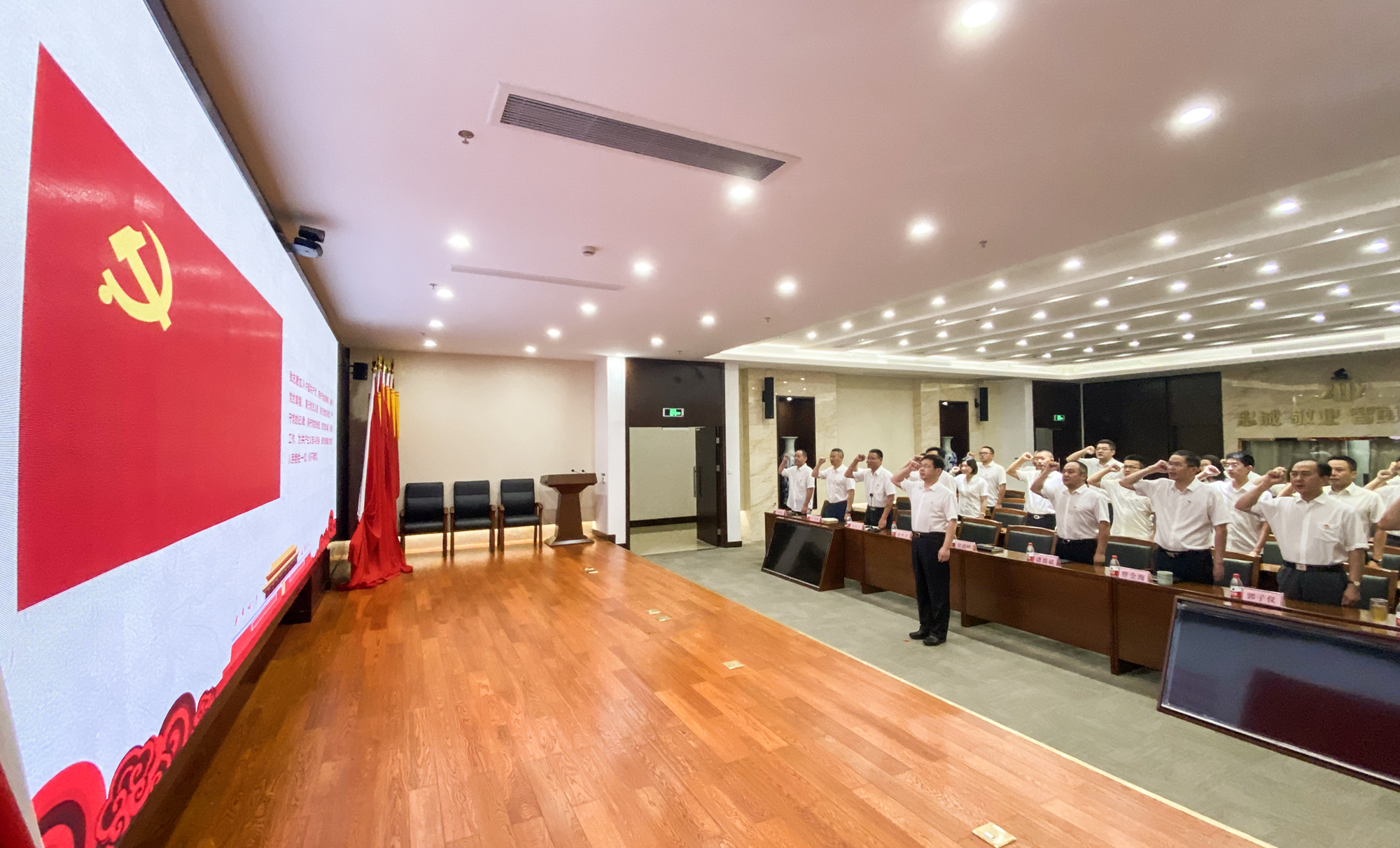 集团党委书记、董事长吴高峻带领全体党员重温入党誓词。