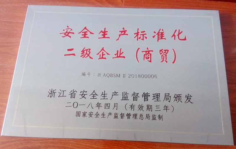 4月23日,浙江省安全生产监督管理局发文公布“安全生产标准化二级达标企业”名单,宁波公司在列。5月23日,公司收到证书和牌匾。