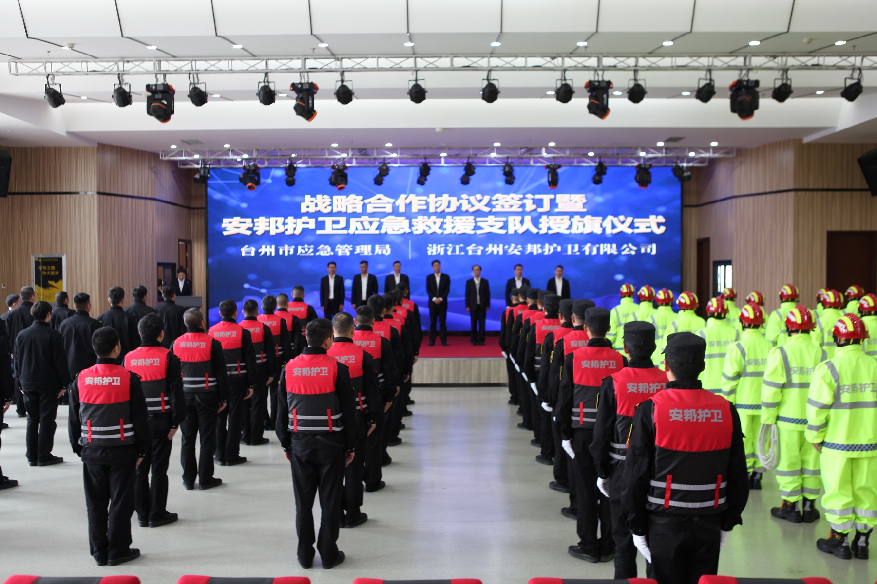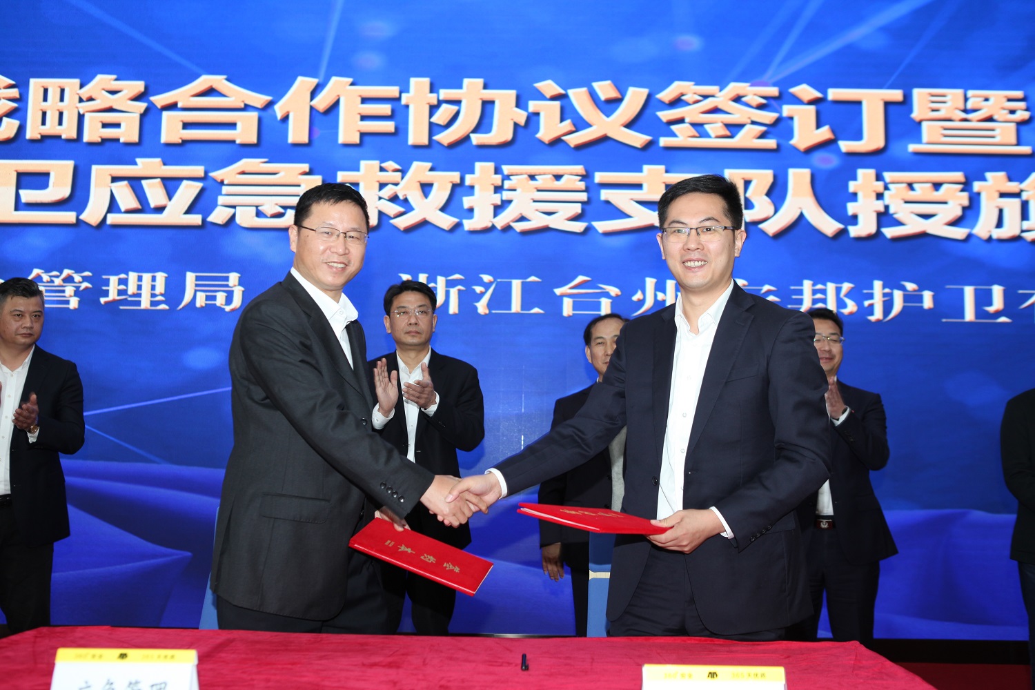 扛起职责使命,擦亮平安建设的“安邦名片”。应急救援工作责任重大、任务艰巨。希望台州公司和支队以今天的签约授旗为新起点,切实发挥好专业辅助、物资运维、基础协同、安全模范等职能作用,与各应急救援力量携手并肩、共同作战。