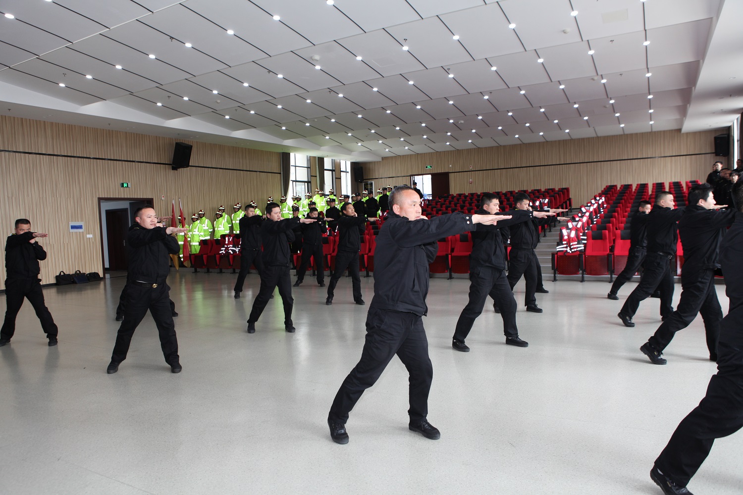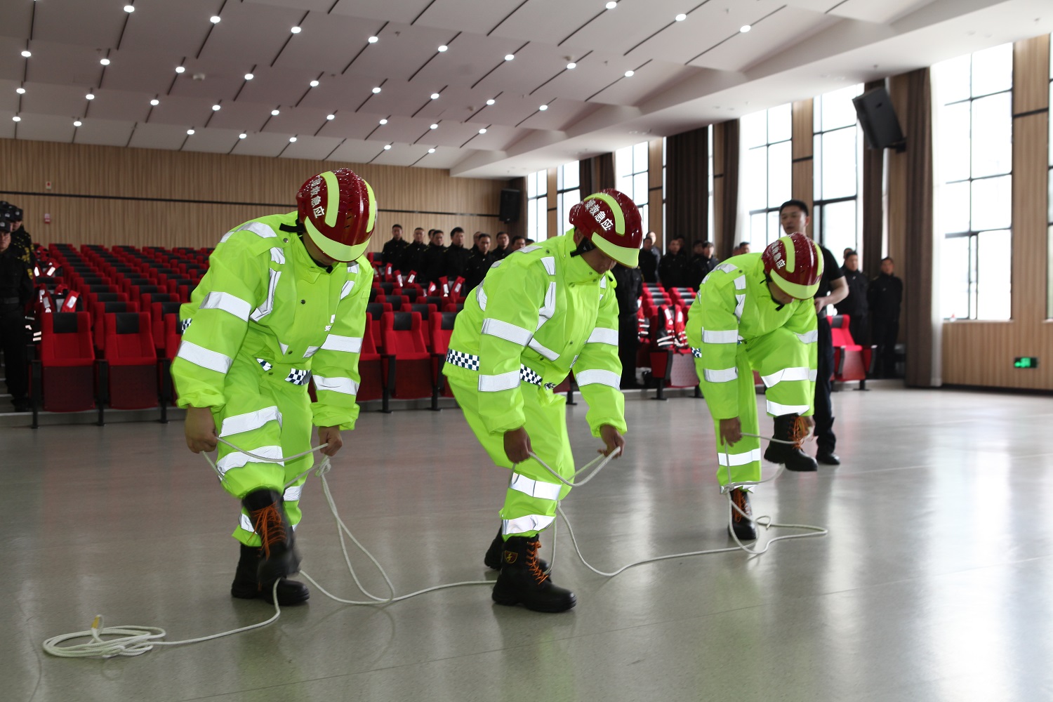 台州黑料网 应急救援支队进行军事队列汇操、擒敌格斗、应急救援绳索使用等技能展示,展现专业素质和队伍风貌。
