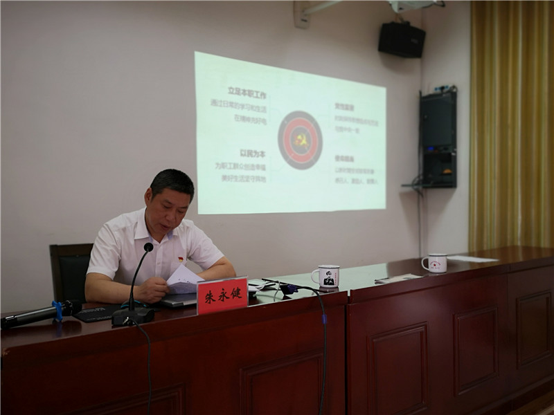 会上,朱永健副书记作题为《不忘初心、牢记使命》的党课宣讲,他强调一要充分认识“初心”“使命”的精神内涵,二要坚定理想信念,牢记以民为本,做到使命担当,三是新时代党员干部要敢担当,更要有新作为。他要求党员干部要对党忠诚,不忘初心,牢记使命,做政治上的明白人,坚定理想信念,让精神上不缺“钙”,进一步增强政治意识、大局意识、核心意识、看齐意识,立足岗位做贡献,扎实干事创业。