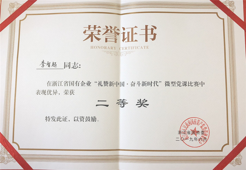 6月5日,省国资委主办的浙江省国有企业“礼赞新中国·奋斗新时代”微型党课比赛在杭州举行。丽水公司李智超代表集团公司参赛,荣获本次大赛“二等奖”,这是丽水公司连续三年入围省国有企业微型党课大赛并获奖。