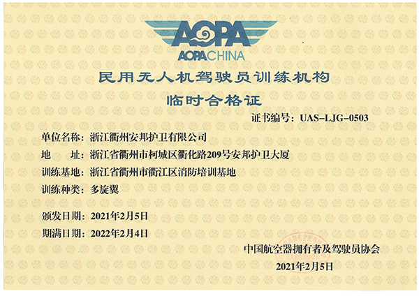 重磅喜讯!衢州安邦获AOPA民用无人机驾驶员培训资质