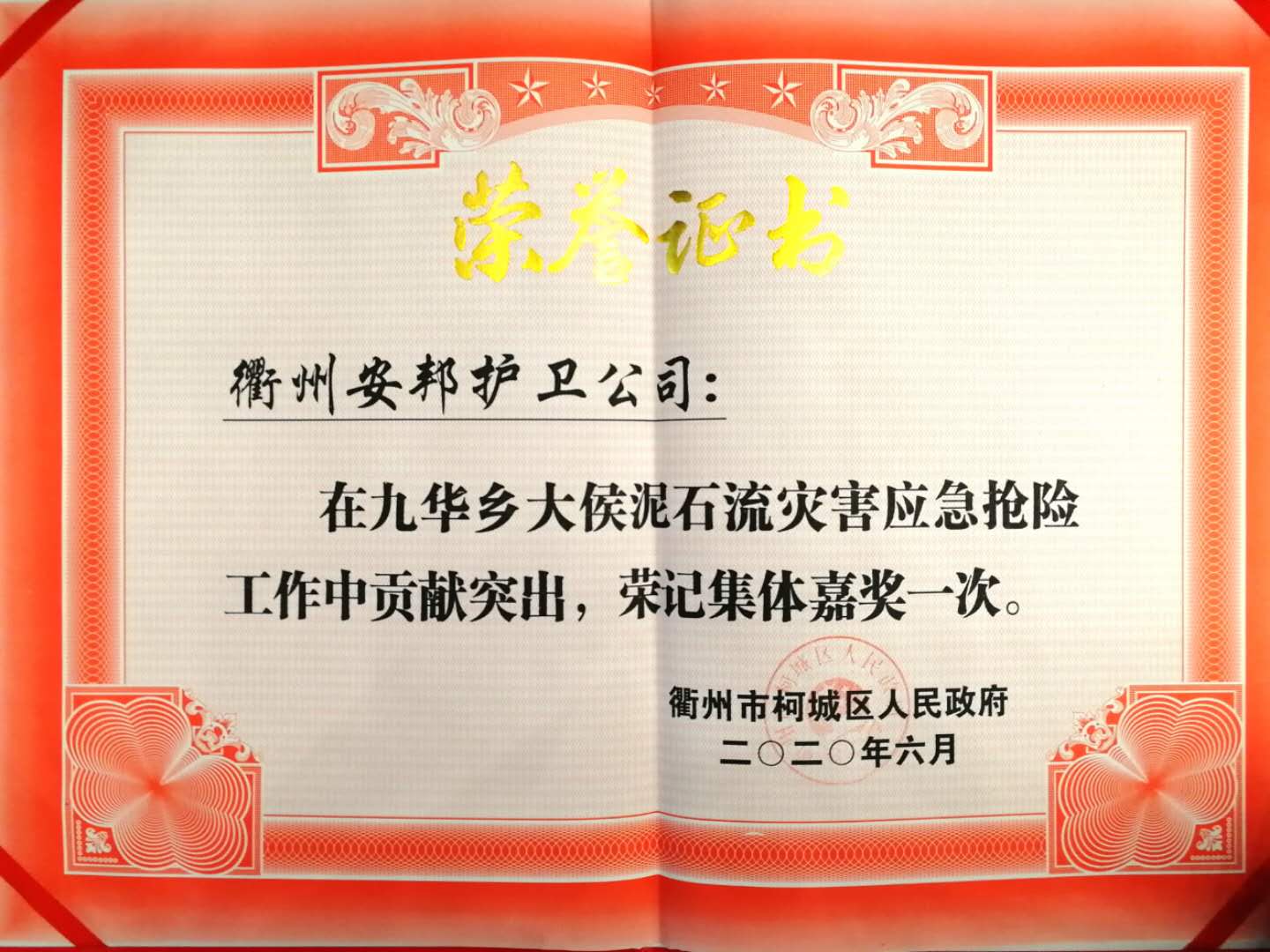 6月15日下午,柯城区九华大侯泥石流灾害应急抢险总结表彰大会暨防汛工作再部署会召开。会上隆重表彰了九华大侯泥石流灾害应急抢险先进单位及先进个人。