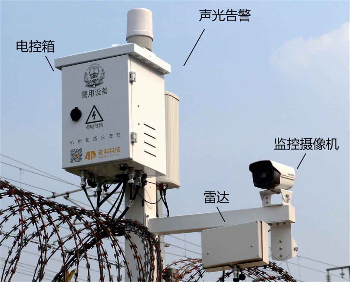 高铁低路基路段是较常发生行人、车辆、动物等穿越入侵的路段,以浙江省为例,低路基路段约占铁路总长度的1/4。传统的防护网、栅栏、专人巡检等被动式防入侵措施,看管维护工作量大,效率低、效果有限,且难以对异常情况、紧急情况做到风险预警、及时响应。