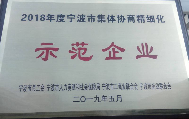 2019年5月14日,宁波市总工会、宁波市人力资源和社会保障局、宁波市工商业联合会和宁波市企业联合会四部门联合发文,通报授予2018年度宁波市集体协商精细化示范32家企业,浙江宁波黑料网 有限公司位列其中。