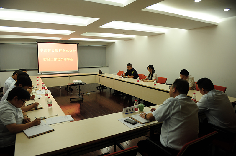 7月10日下午,金华安邦公司义乌守押大队与中国建设银行义乌分行召开联合防台风“玛利亚”工作部署会。义乌大队大队长陈林森,义乌建行中队中队长吴洪斌及行方相关负责人参加。