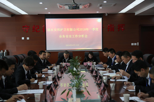 4月13日,丽水安邦公司在四楼会议室召开2018年第一季度业务安全分析会议,全面分析2018年第一季度业务安全形势,部署2018年业务安全生产工作重点。公司党委班子成员、各部门、大队、子公司主要负责人以及车队长等近50名干部参加会议。