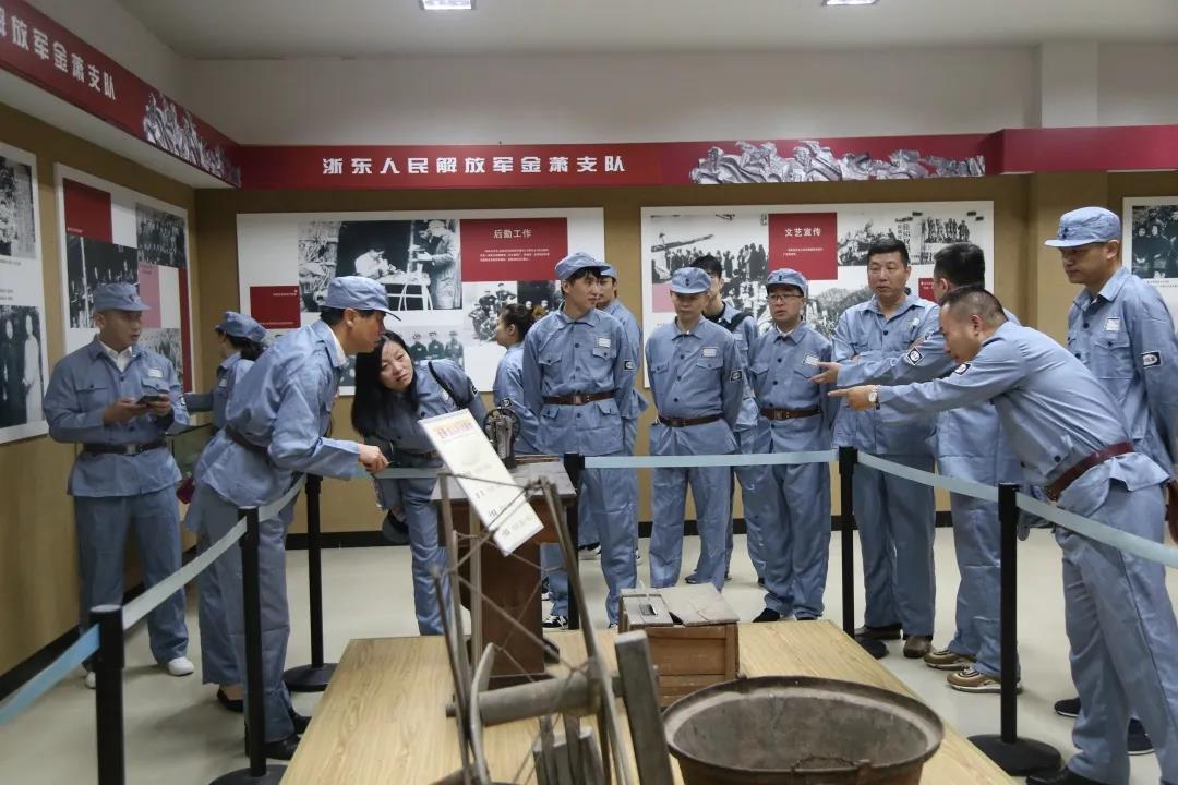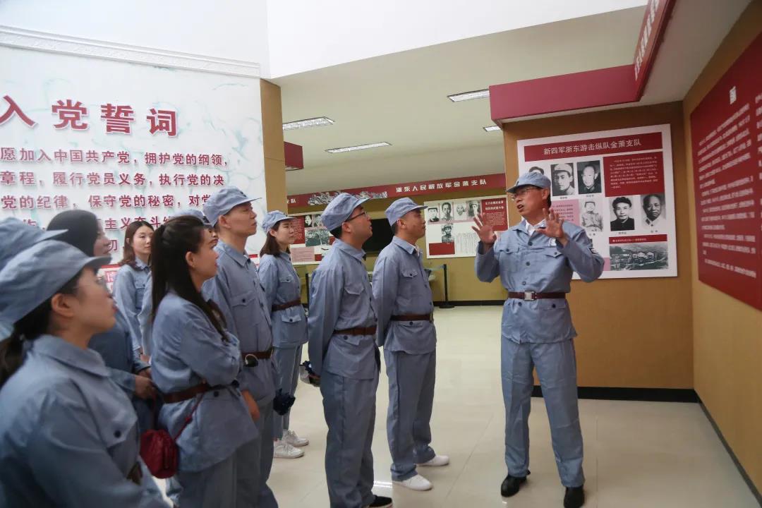 在教育基地,党员、入党积极分子身着红军服装,举行了庄严的开营仪式,并参观了金萧支队纪念馆。