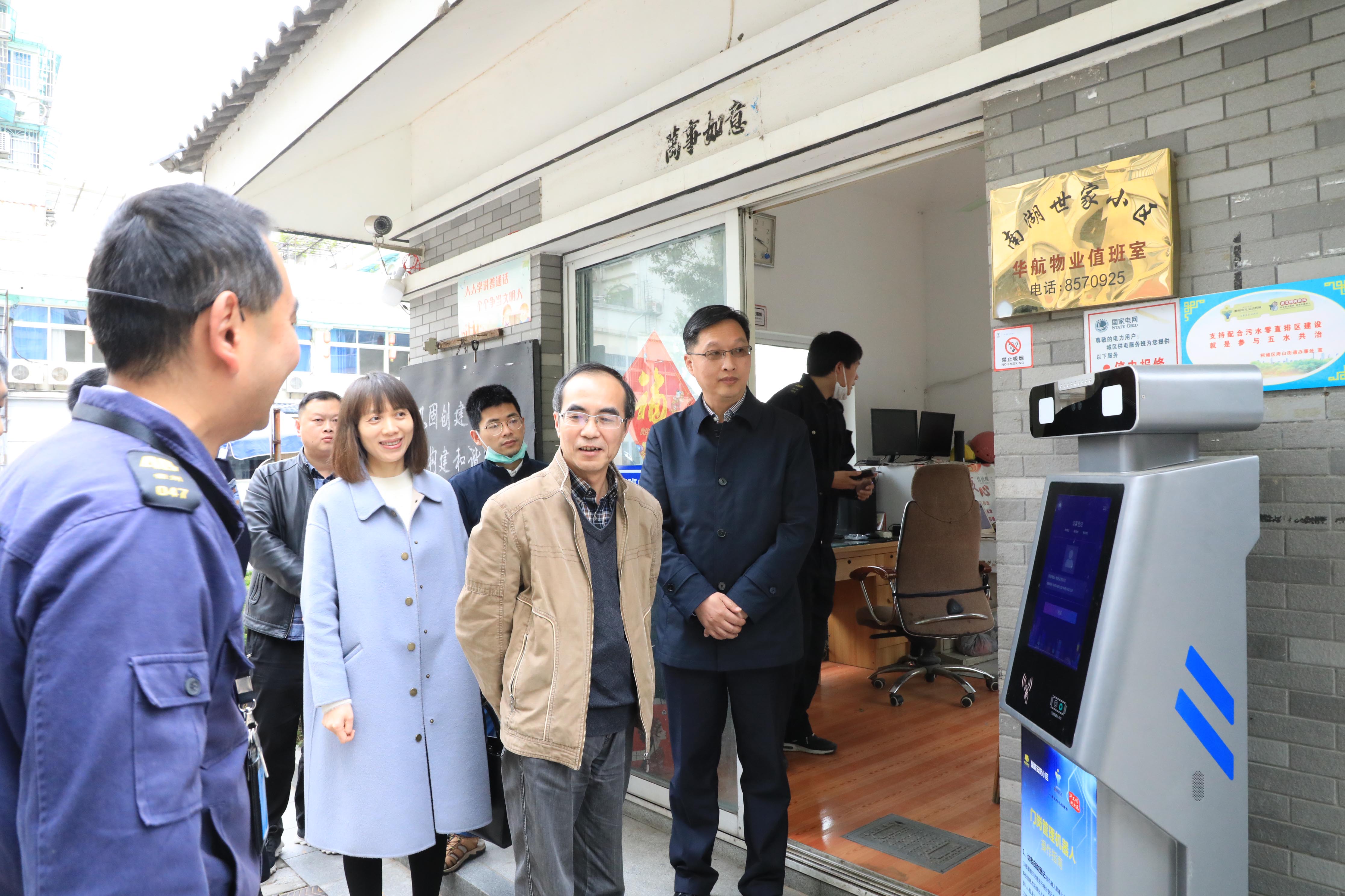 周剑峰一行实地参观了视频监控、智能识别、门禁系统等科技设备,了解小区人防物防技防措施,对小区规范化管理、科技设备投入提升小区管理智慧化水平等给予肯定。