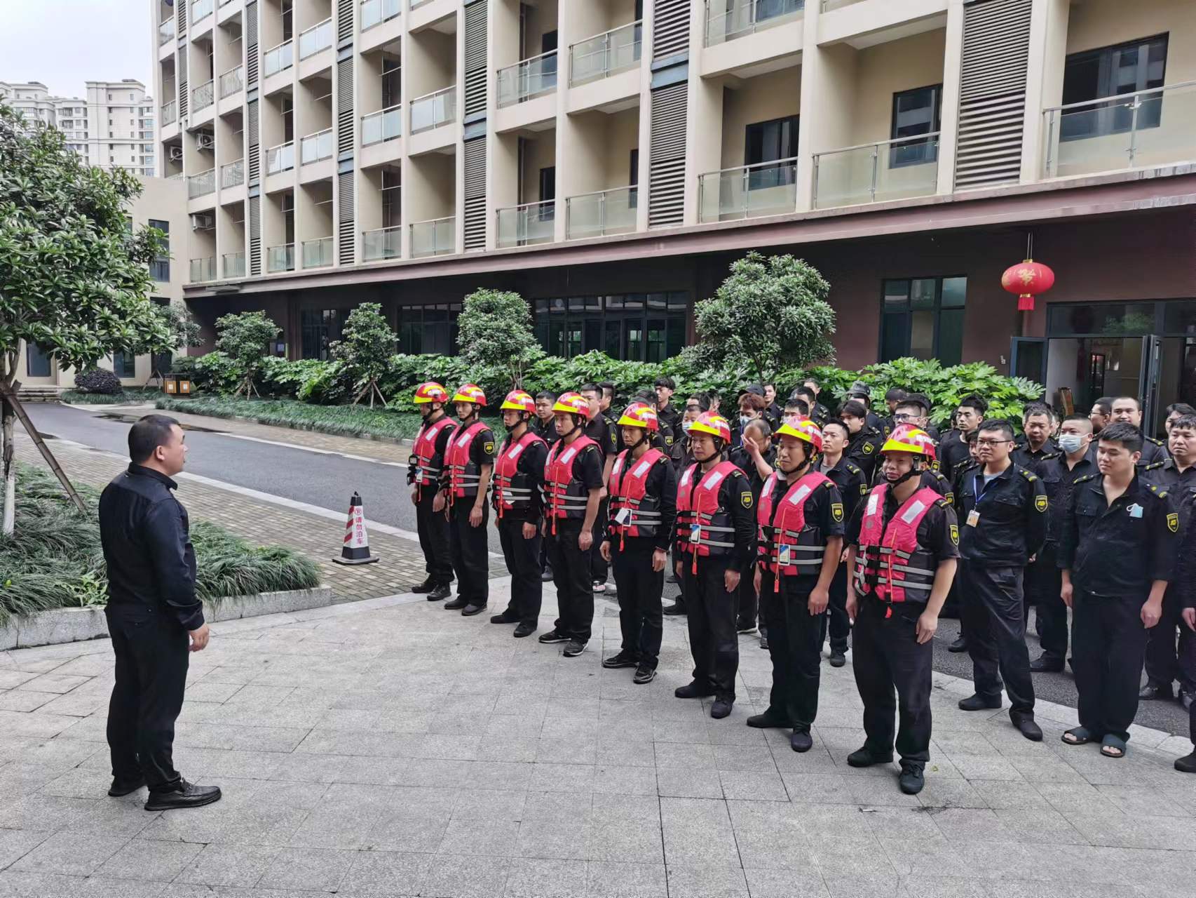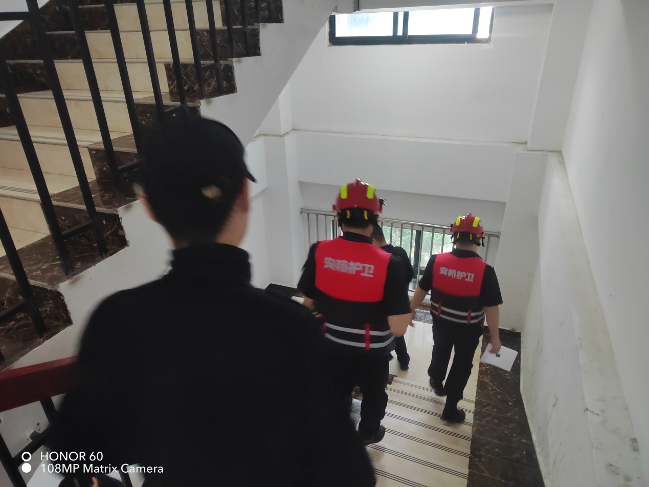 下午15:10分,随着警报声响起,演练正式开始,参演人员迅速冲出宿舍,沿既定路线撤离,仅用一分半钟时间全部在楼下集合,达到了预案要求。