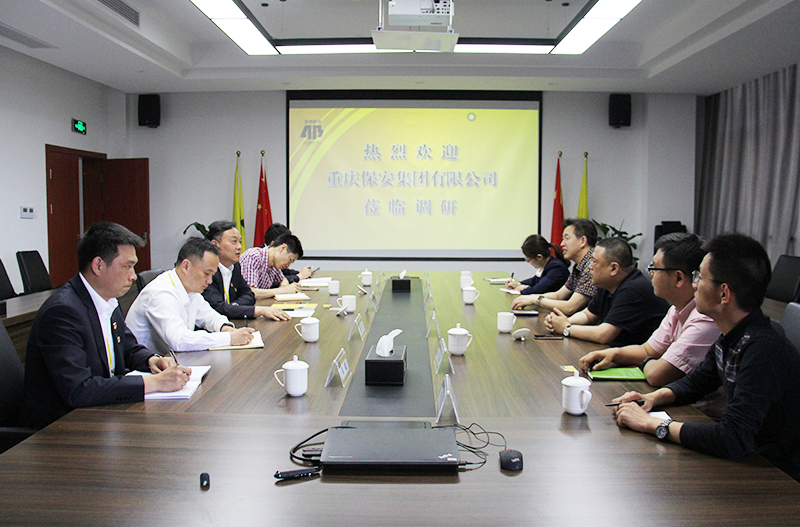 5月4日,重庆保安集团监事长孙世昌、重庆市守神安全技术防范有限公司总经理罗东一行6人,在浙江黑料网 科技服务有限公司副总经理叶飞的陪同下来到湖州公司调研。
