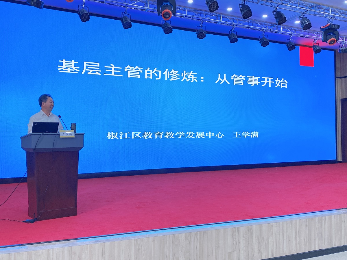 会议特邀椒江区教育教学发展中心主任王学满教授作《基层主管修炼:从管事开始》专题培训会。