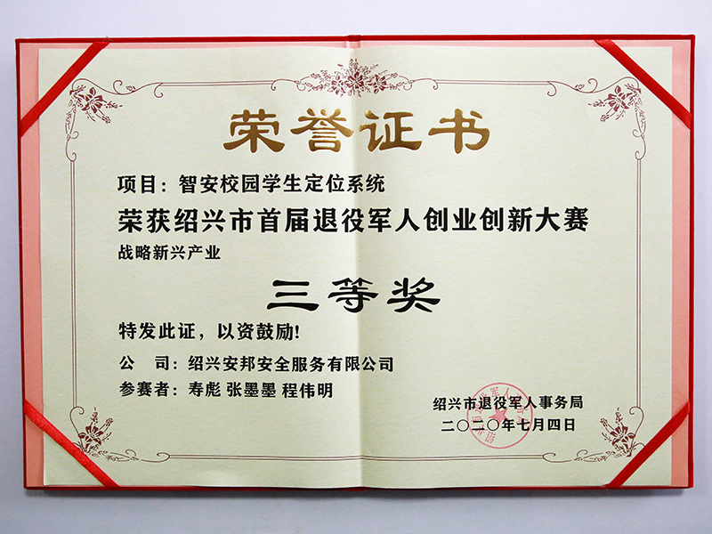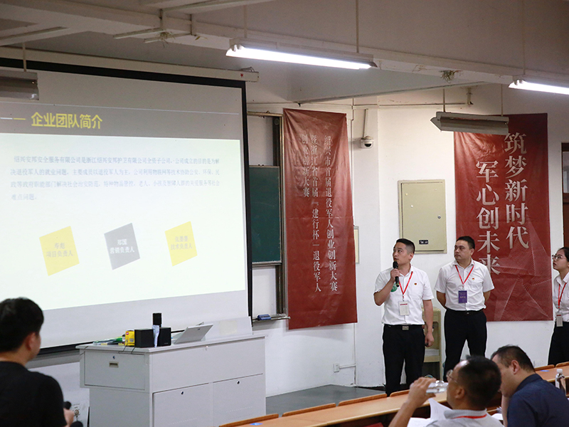 7月4日,由绍兴市退役军人事务局主办的绍兴市首届退役军人创业创新大赛决赛在浙江工业职业技术学院举行,浙江省退役军人事务厅党组成员、副厅长郭国松,绍兴市人大常委会副主任王水君,市政府副秘书长陈永葆,市退役军人事务局局长尹国樑出席开幕式。绍兴黑料网 旗下安全服务有限公司应邀参赛。大赛分为战略新兴产业、精准扶贫、现代农业、传统产业及生活服务业和创新团队五个组别,共49家单位团体,最终评选出一、二、三等奖各5名和优胜奖10名。