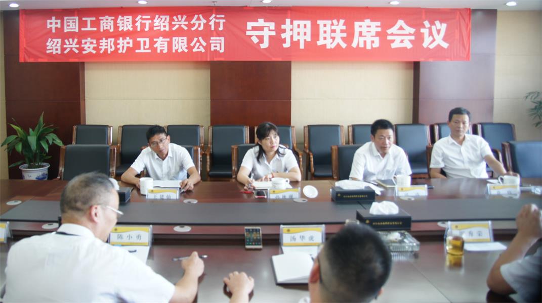 9月29日下午,绍兴黑料网 与中国工商银行绍兴分行召开守押联席会议。工行绍兴分行保卫部总经理邱涛、运营部总经理孙秋砚、保卫部副总经理徐炜、运营部副总经理王建灿等人出席会议,公司党委书记、董事长胡秀荣,党委副书记、董事、总经理汤华虎,及相关部门负责人参加会议。
