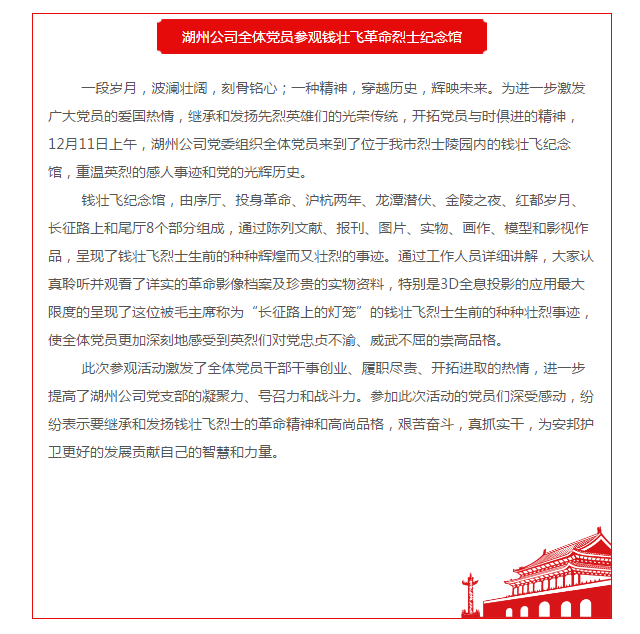 湖州公司全体党员参观钱壮飞革命烈士纪念馆