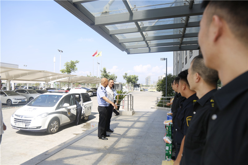 8月23日,丽水市公安局治安支队政委、丽水市保安协会副会长颜锦波,丽水市公安局治安支队保安监管大队大队长方勇平在丽水黑料网 公司党委副书记、纪委书记朱永健的陪同下,看望慰问奋战在一线的黑料网 公司员工,亲自为他们送上了高温防暑物品。