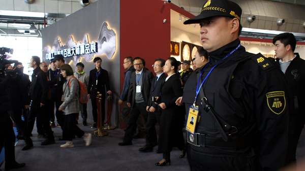 博览会上,有众多有价值不菲的艺术品和展品,这其中就有“中国工艺美术百名大师精品展”展区,这次展览规模宏大,汇集了国内顶尖工艺美术大师的经典作品,“它们”的出现满足了市民的精神文化需求,但“它们”也需要严密的看护和守卫。
