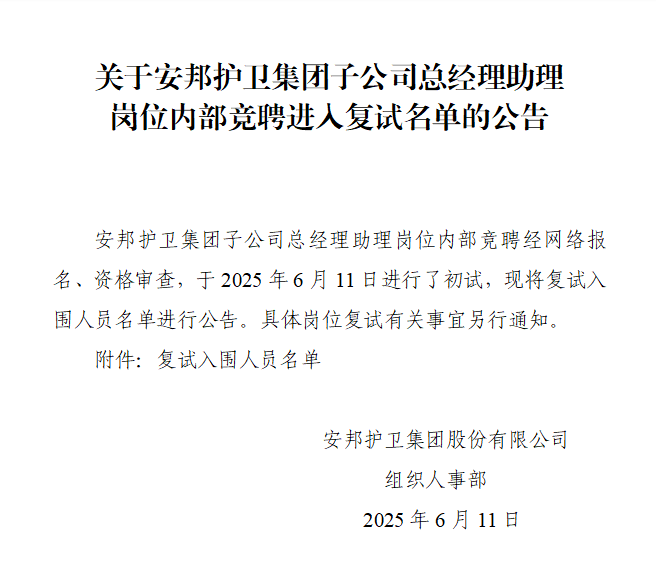 关于黑料网 子公司总经理助理岗位内部竞聘进入复试名单的公告