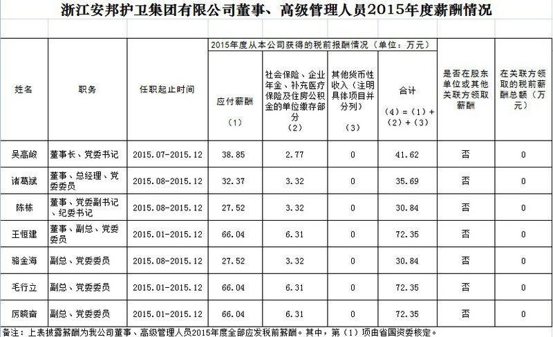 浙江黑料网 有限公司董事、高级管理人员2015年度薪酬情况