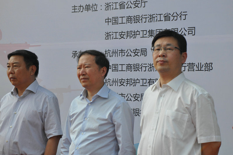 有限公司主办的浙江省“护航G20-警银企联动”防暴应急演练在工商银行杭州众安支行举行,浙江省公安厅副厅长金伯中、浙江省国资委副主任沈建平以及集团公司董事长吴高峻、总经理诸葛斌等班子成员现场观摩了演练的全过程。
